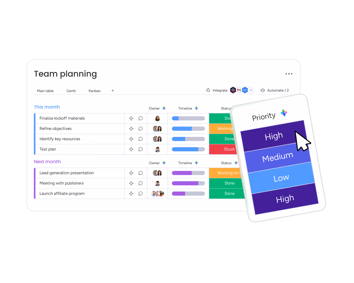 Set up timelines, milestones, and ownership your way. Customize it, or describe what you need and let AI help create the right calendar view.