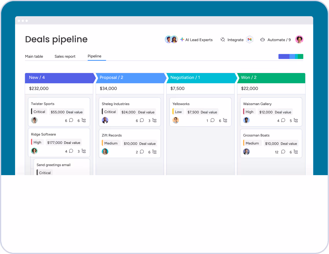 Yes. monday CRM is well suited for small and mid-sized businesses that need flexibility without enterprise CRM complexity. Teams can start simple and expand their workflows as their account management needs grow.
