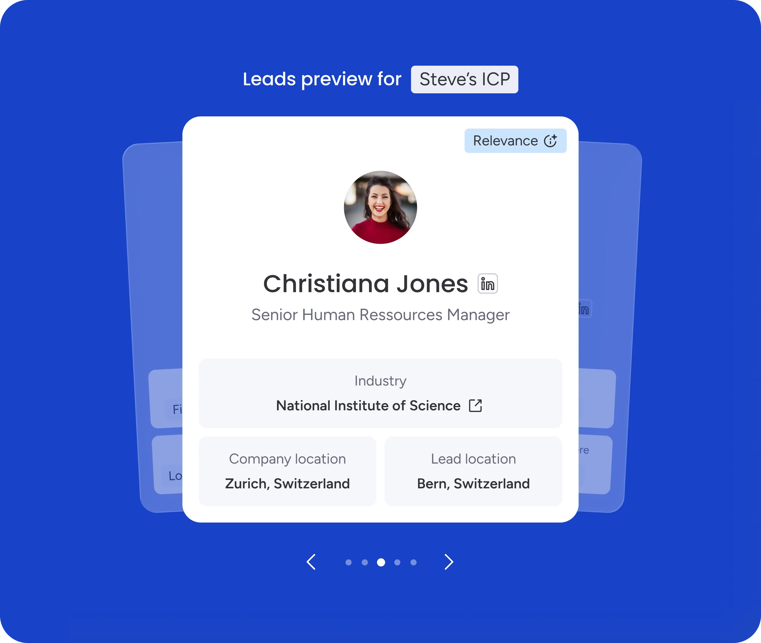 The AI Lead agent continuously surfaces leads that match your criteria. Preview each one, fine-tune your targeting, and stay in control without managing every step.