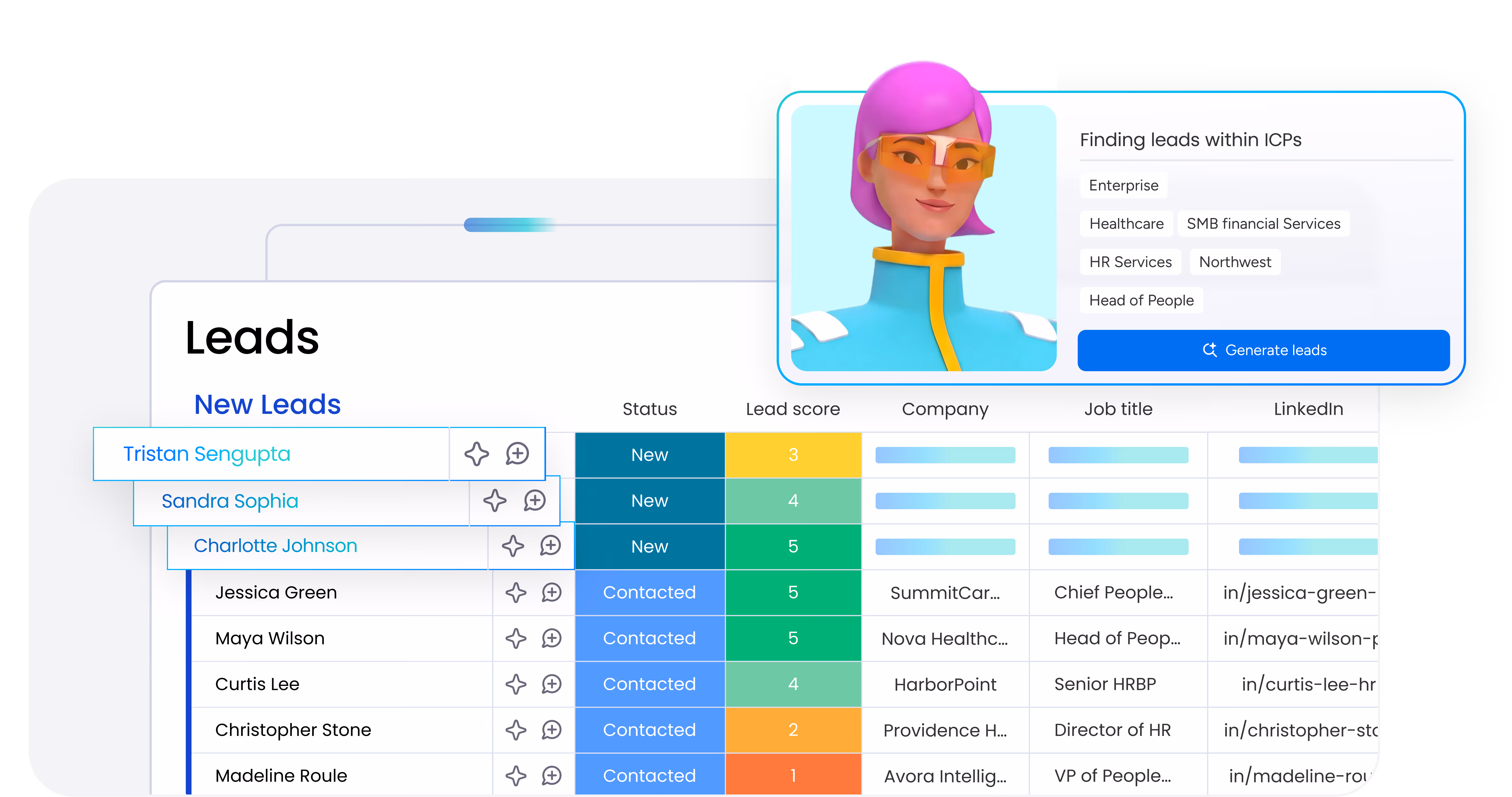 Get high-fit leads sent straight to your CRM, enriched, prioritized and ready for outreach.