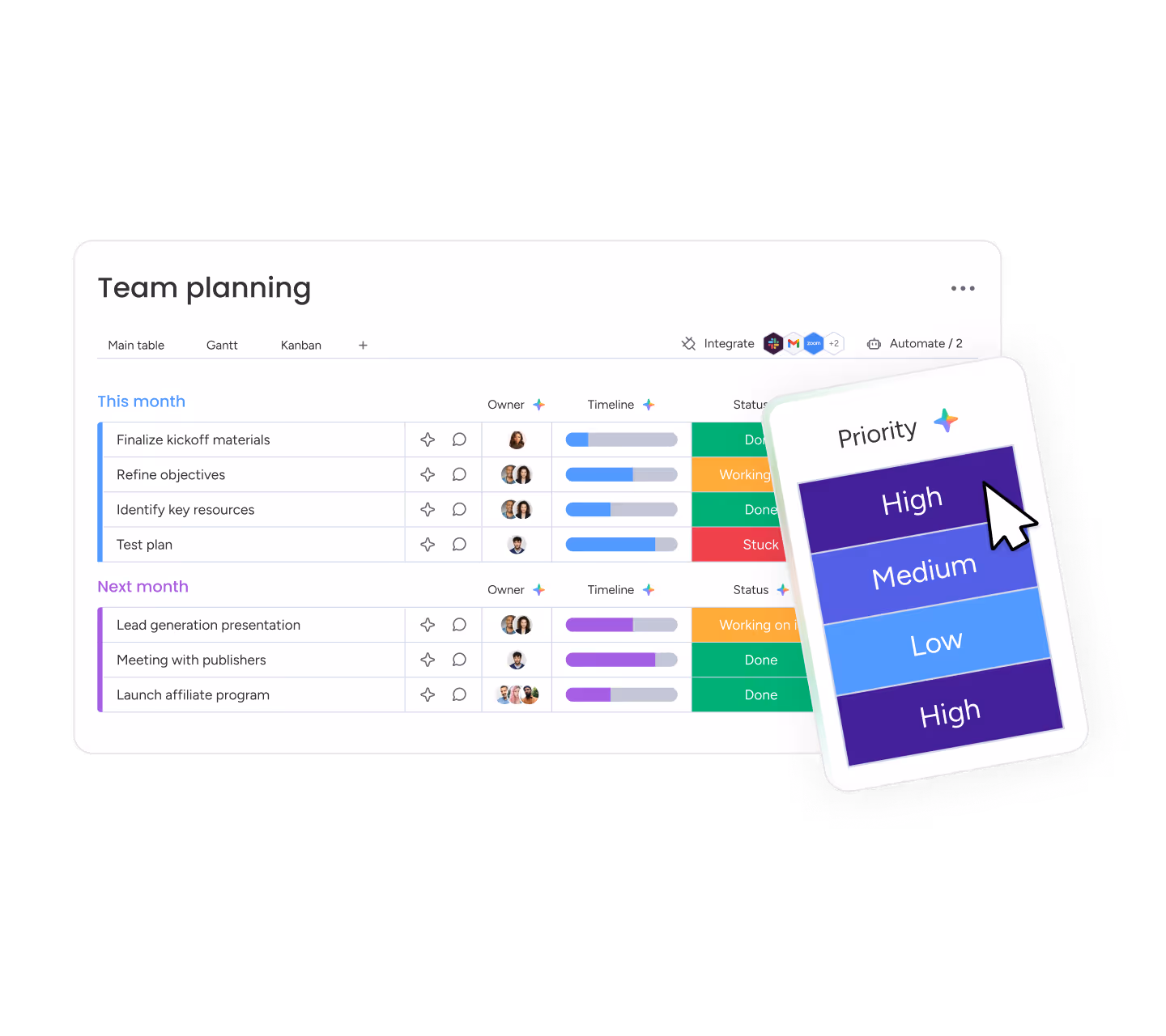 monday work management lets teams define quarterly priorities, align timelines and ownership, and track progress throughout the quarter with real-time visibility.