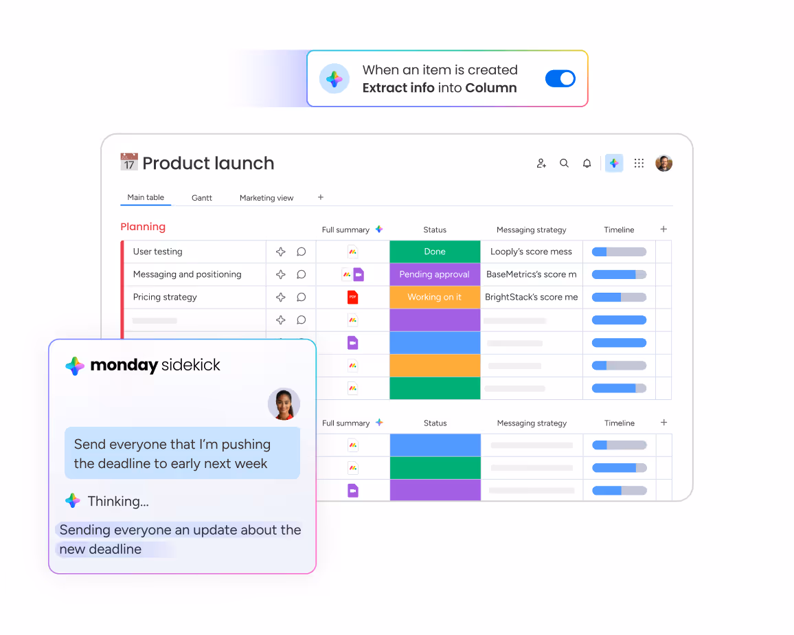 Plan timelines, set milestones, and assign owners in one place, with AI helping you prioritize work and suggest next steps as things change.
