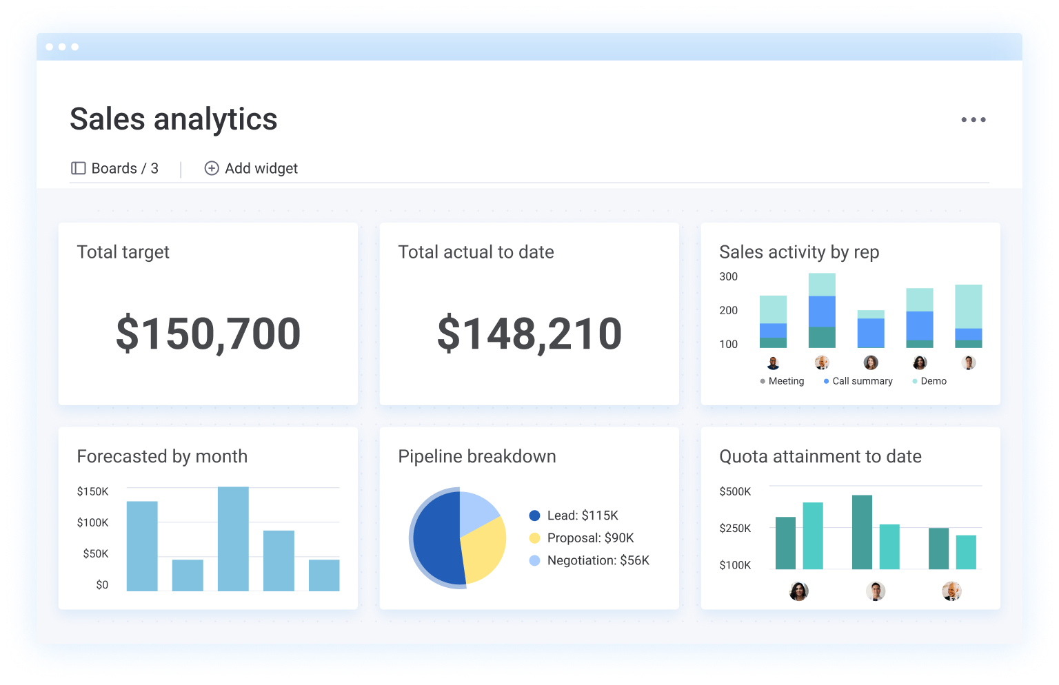 - Smart software like monday CRM automates metric tracking with drag-and-drop dashboards and AI-powered insights.