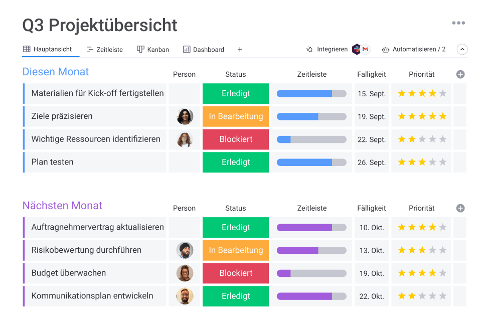 - Projektzeitleisten und Deadlines