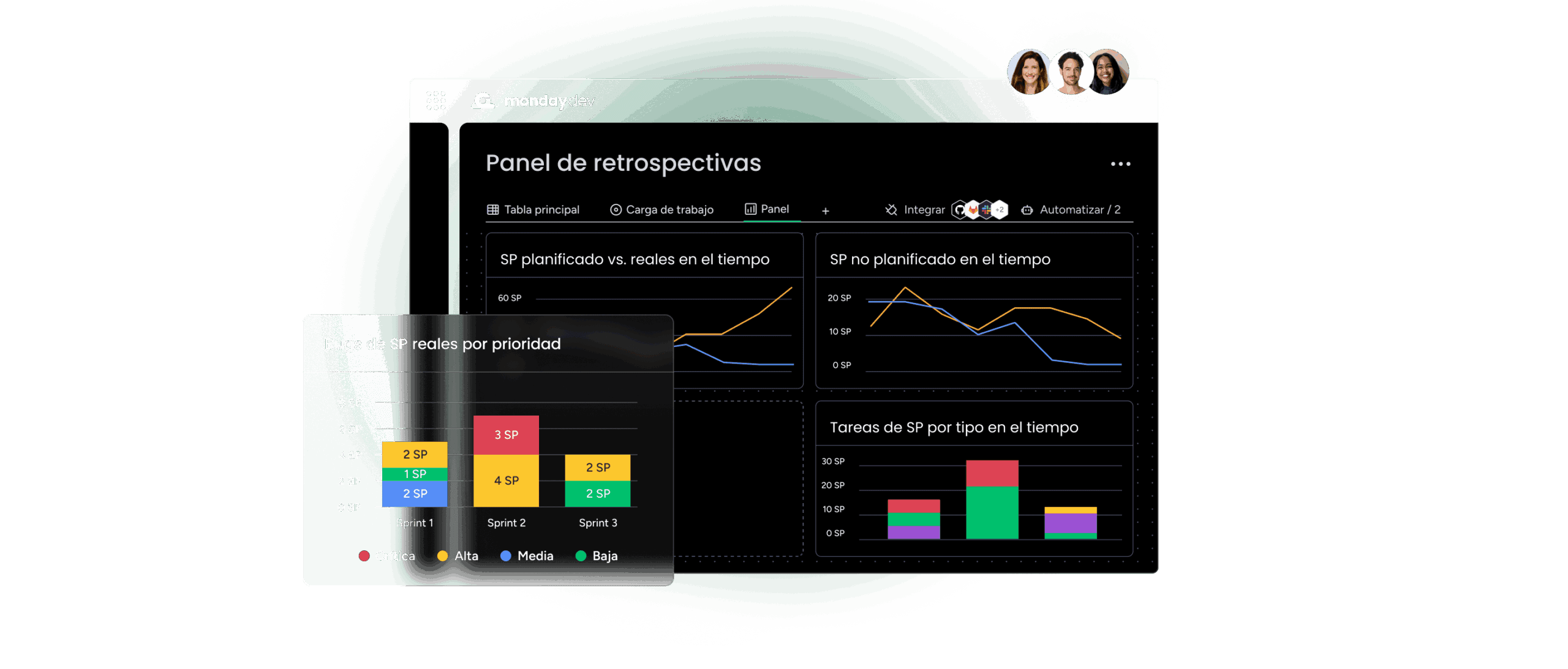 Dashboards y análisis en tiempo real para monitorear avance del sprint, detectar cuellos de botella y obtener insights accionables