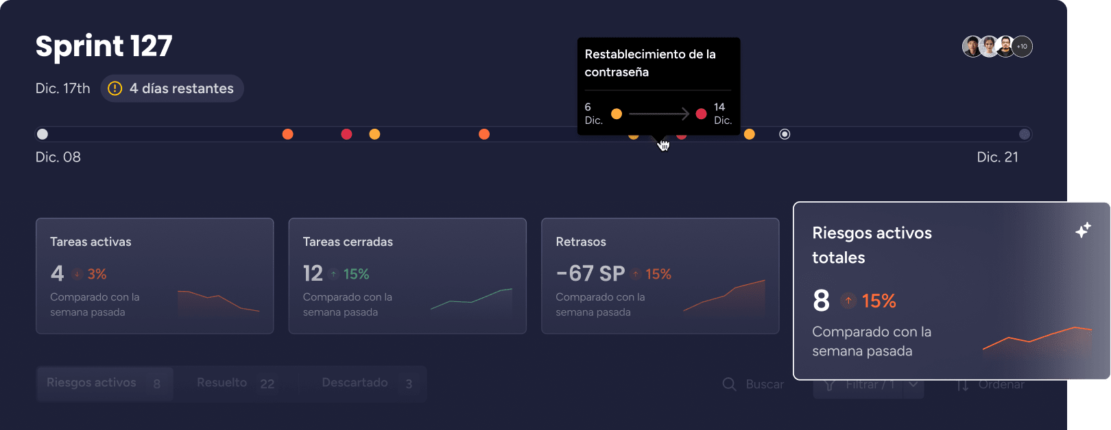 Reaccionar en tiempo real: Cambia prioridades durante el sprint, reasigna trabajo y desbloquea a tu equipo sin perder el ritmo.