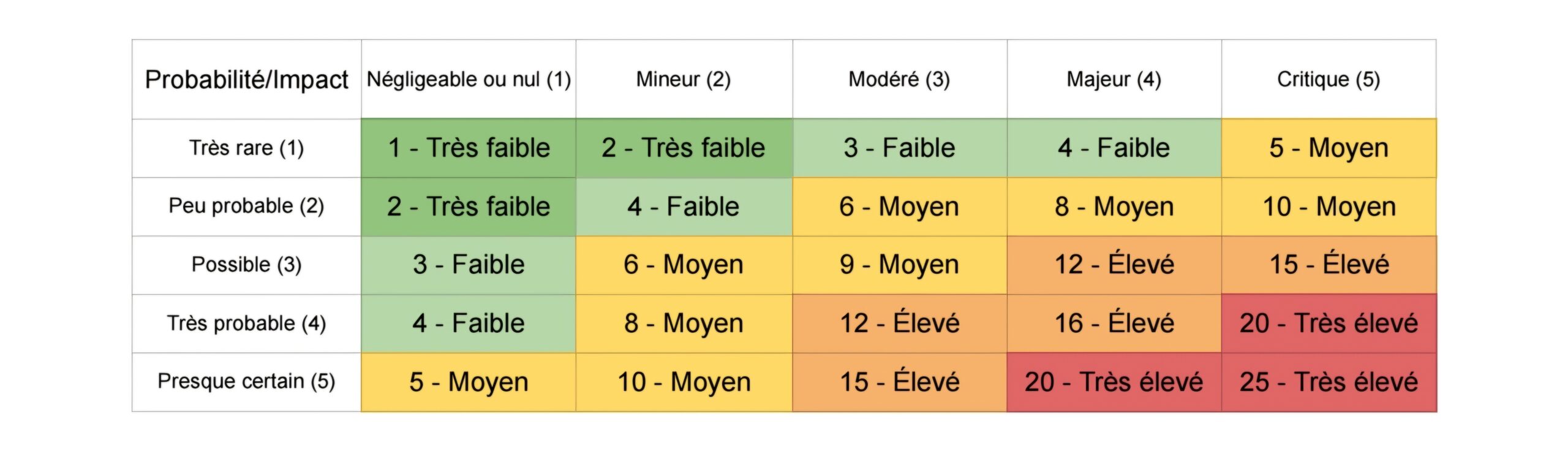 En associant ces divers éléments, on peut alors construire une matrice des risques claire pour visualiser les menaces les plus critiques et planifier ses réponses de manière structurée.