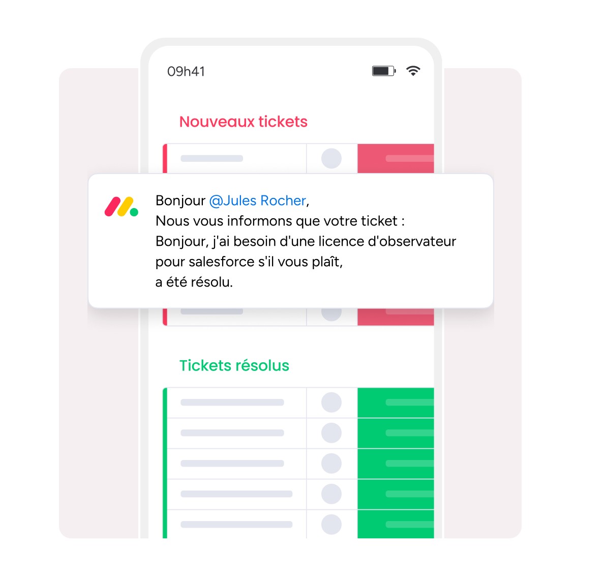 La collaboration entre l’IT et les autres services de l’entreprise devient naturelle. Avec plus de 200 intégrations natives, monday service s’intègre en temps réel avec vos outils préférés comme Slack, Microsoft Teams et votre messagerie pour partager rapidement vos mises à jour, escalader un incident ou valider une demande en quelques secondes. Grâce à des automatisations d’emails intégrées, chaque message part au bon moment à partir du bon template. Idéal pour améliorer la gestion des demandes IT et accélérer les workflows ITOM.