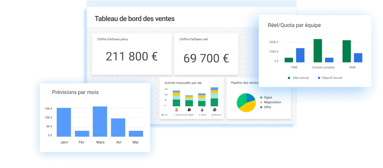 Workflows automatisés, intégration d’e-mails, formulaires intelligents et tableaux de bord intuitifs mis à jour en temps réel, tout est donc réuni pour booster la performance et la croissance de votre entreprise, petite ou grande.