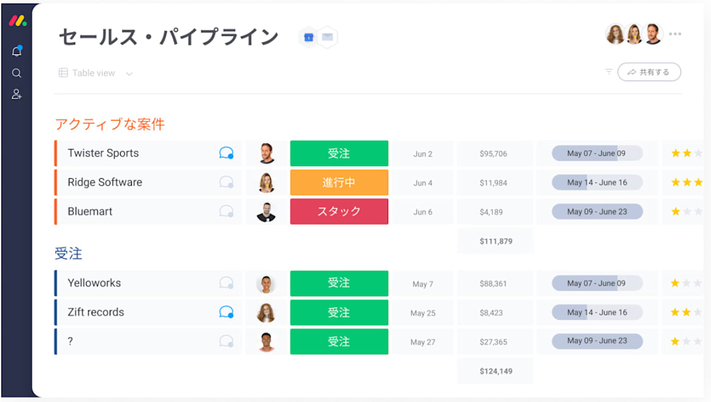 monday.comは必要な機能だけを選んで使い始められるため、初めてSFAを導入する企業でも、比較的負担を抑えて導入しやすい設計です。