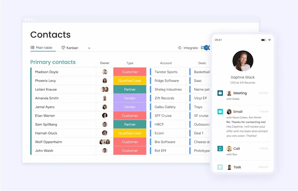 일부 회사는 CRM 소프트웨어에서 사용할 수 있는 모든 이메일 마케팅 기능을 인지하지 못할 수 있습니다. CRM과 이메일 마케팅 전략을 결합하면 더욱 정확한 고객 인사이트와 데이터를 얻을 수 있으며, 이는 더욱 강력한 캠페인 관리로 이어집니다. monday.com은 팀 간 협업을 강화하여 전략적 의사결정과 실행이 부서 경계를 넘어 원활하게 진행되도록 지원합니다.