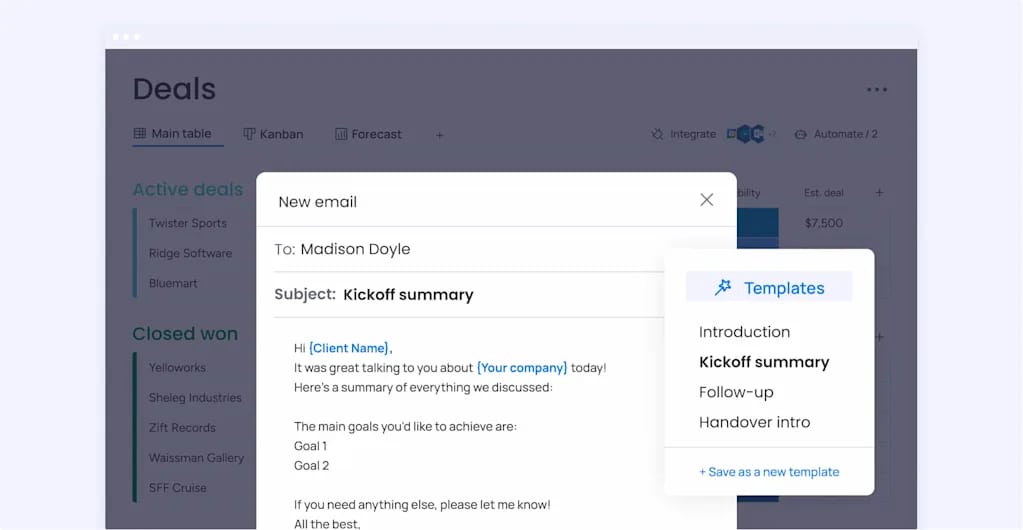 monday CRM: 고급 이메일 마케팅 기능을 갖춘 업계 최고의 CRM