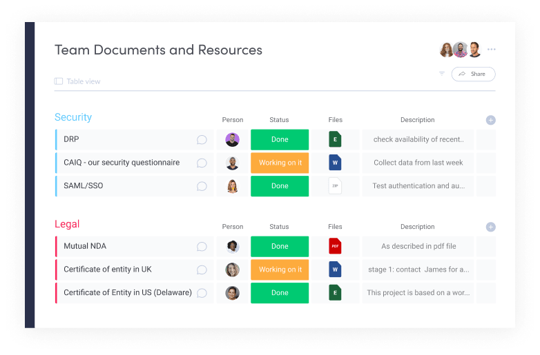 With monday.com, you can build a centralized board to track every task, deliverable, and milestone outlined in your scope. Everything is color-coded and customized to your workflow, so you’re not stuck with a rigid framework. You can use features like: