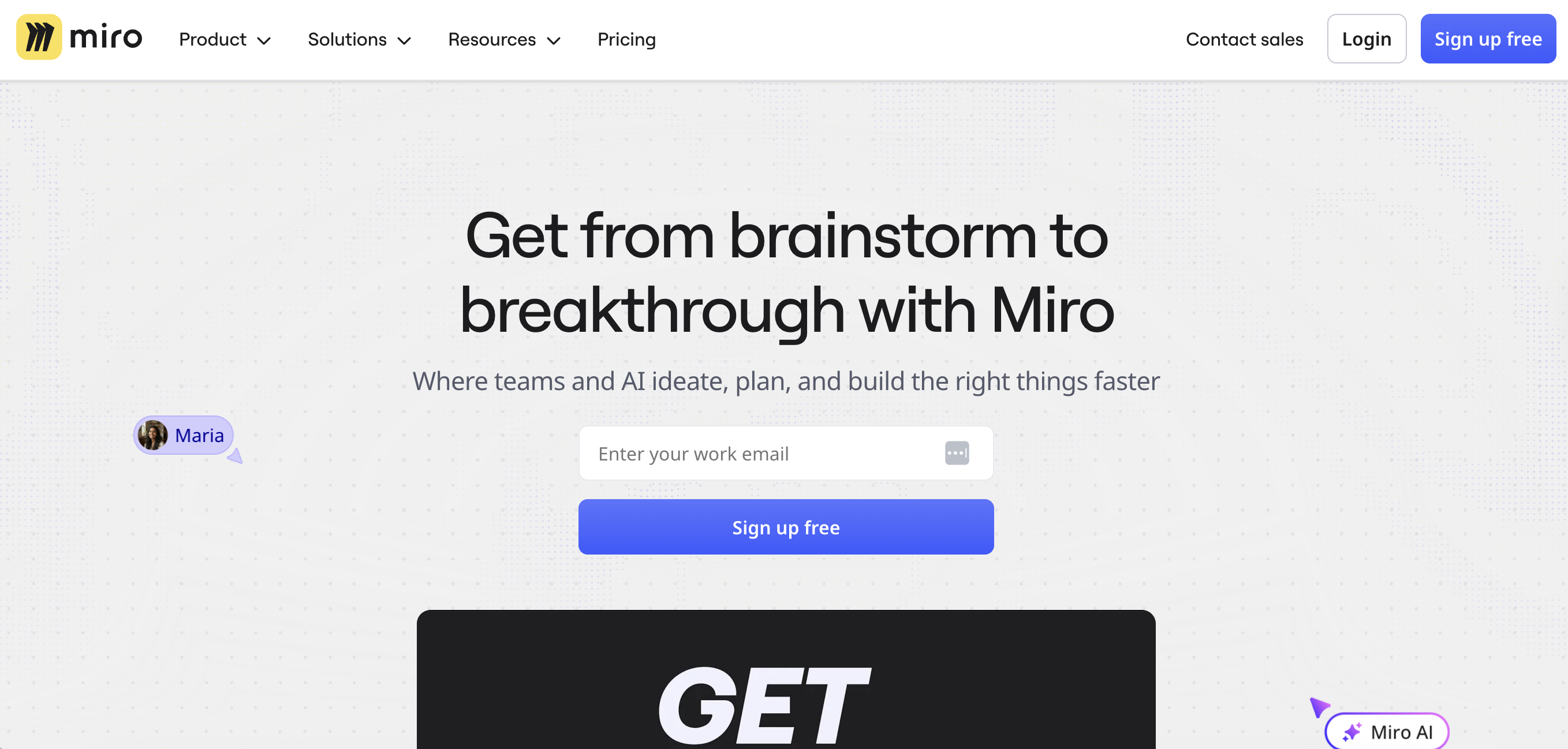 | Miro | Visual collaboration | Whiteboarding | 5–1,000 | $8/user/month |