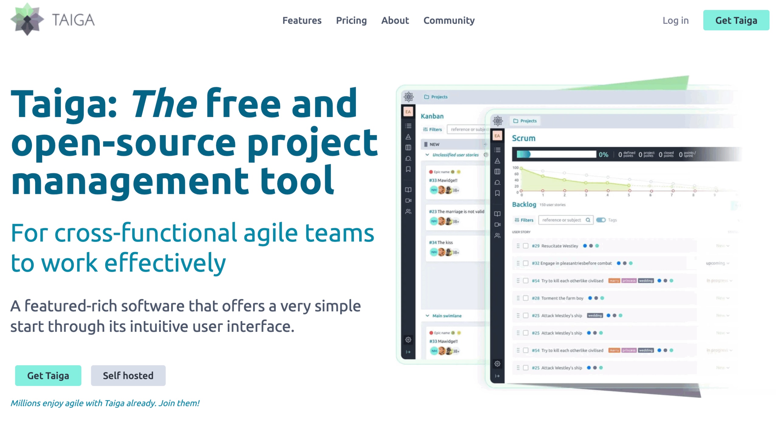 - Taiga On Your Premises: Custom pricing available upon request for teams larger than 25 people