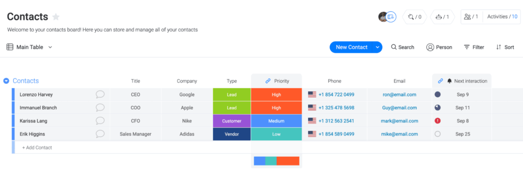 monday sales CRM —— 最強大的聯絡人管理資料庫
