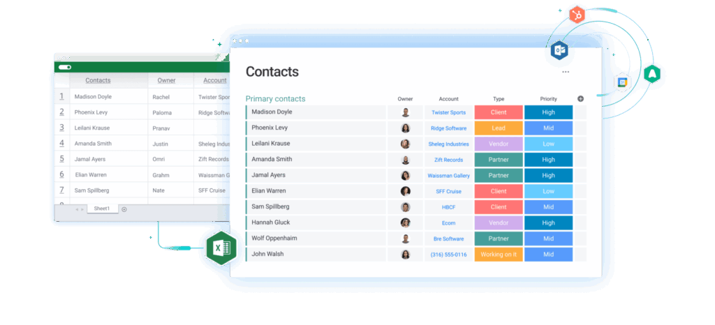 就算你原本已經在用其他 CRM,也能把舊系統的資料同步到新的 monday sales CRM 聯絡人管理資料庫,無痛接軌。