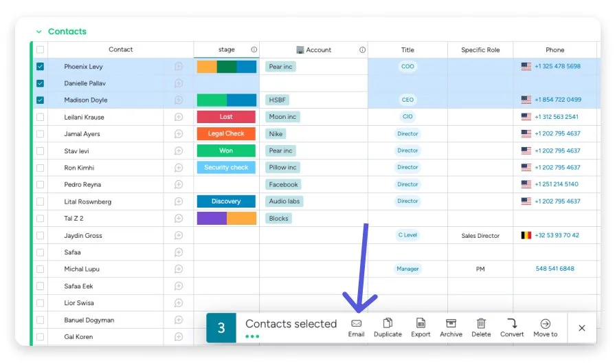 電子郵件功能:內建的郵件範本流程、大量個人化發送,加上生成式 AI 協助撰寫,讓你輕鬆替名單打造更有溫度的內容。寄出後,系統會即時通知你收件人何時收到、打開或回覆郵件,方便追蹤成效。還有共享信箱、可整合 Outlook 與 Gmail,以及自訂簽名等實用功能,全都一應俱全。
