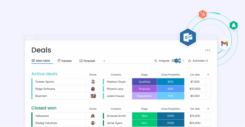 這篇指南會直接把市場上兩大熱門選手擺在一起比較:Pipedrive 和 monday CRM。Pipedrive 主打讓你清楚規劃銷售流程的每一個階段;而 monday CRM 則是針對產業需求打造,能完整覆蓋從售前到售後的整個銷售週期。為了讓你更快鎖定方向,我們會深入解析它們的功能、價格、好用程度,以及使用者的真實評價。
