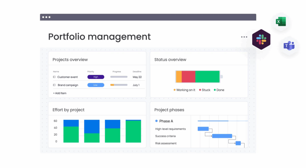 同時,專案組合管理工具(Portfolio Management) 讓多個計畫能整合在共同目標下推進,避免重工與資訊落差。