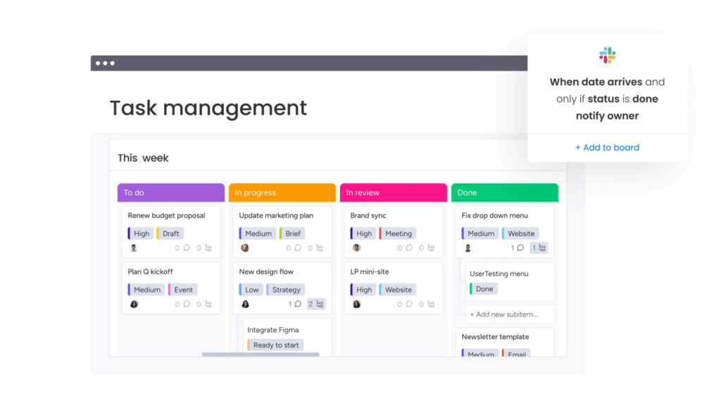 一家跨國製造企業利用 monday work management 同步追蹤供應鏈、工廠生產進度與市場上市時程。當系統偵測到原料短缺時,會即時通知管理層,使公司能迅速重新調度資源,避免生產延誤影響營收。