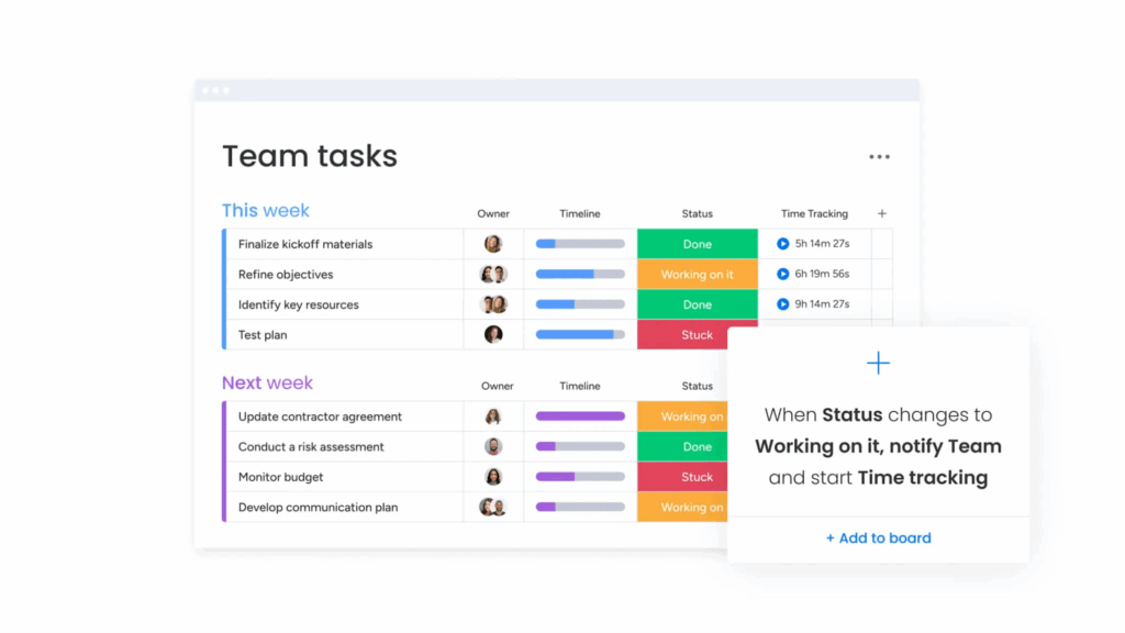 不論你偏好哪種方式,monday 都能讓你清楚掌握每一個任務的進度與責任歸屬,讓專案時程既準確又實際。