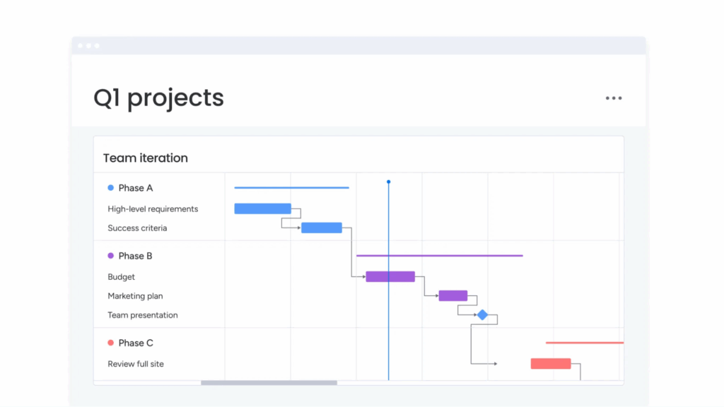 再實際一點說:你不能在預算還沒核准前就啟動專案第一階段,也不能在內部品質檢查沒通過前就把成果交給客戶。這些階段彼此相扣——每一個任務都「依賴」另一個才能完成。