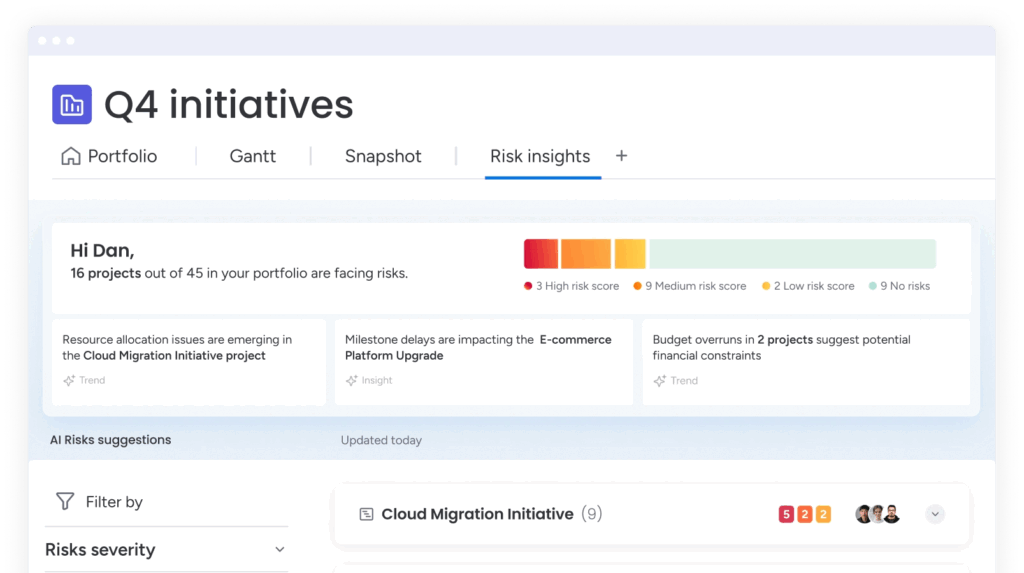越早發現風險,你就越能用冷靜、清晰的方式去應對。這正是 monday AI 的 Portfolio Risk Insights 所擅長的事。