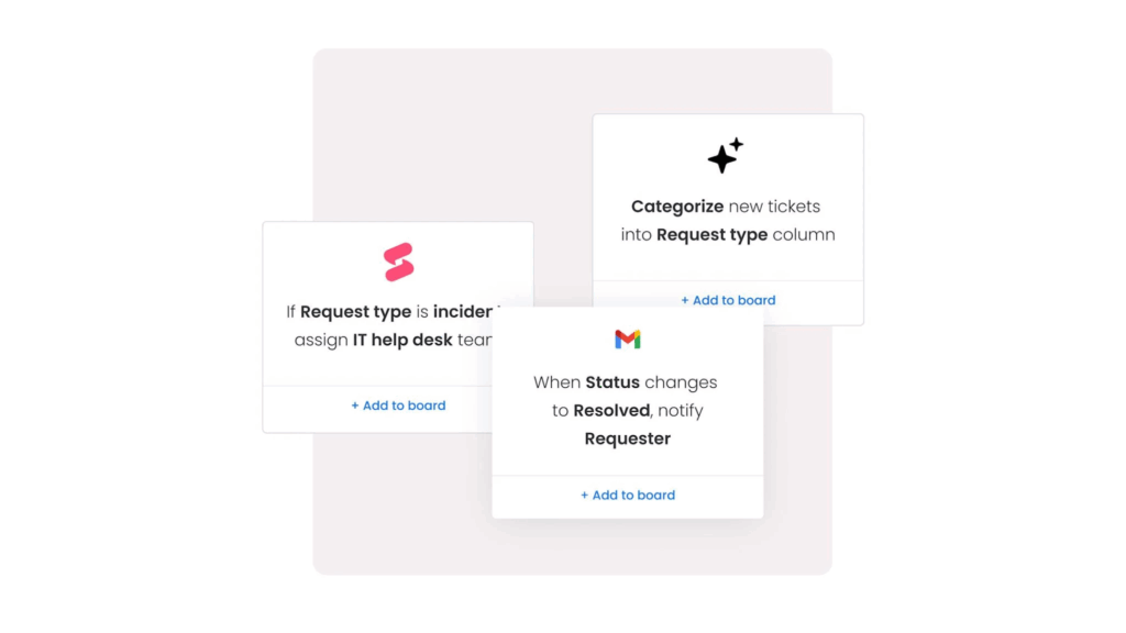 在客服平台 monday service 裡,AI 的智慧分單功能能自動判斷工單的緊急程度、問題類型以及該分派給哪個部門,並直接送到最合適的客服手上。這樣一來,客戶能第一時間找到對的人處理,而客服人員也不用再浪費時間一張張人工篩選工單。
