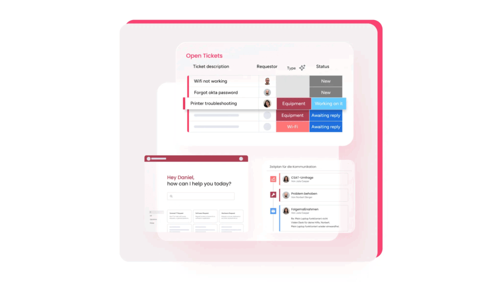 monday service 是建立在 monday.com Work OS 上的企業級平台,靠著聰明的自動化流程和 AI 技術,讓公司內部的人資與服務作業,不再只是被動處理,而是能主動規劃、主動出擊。