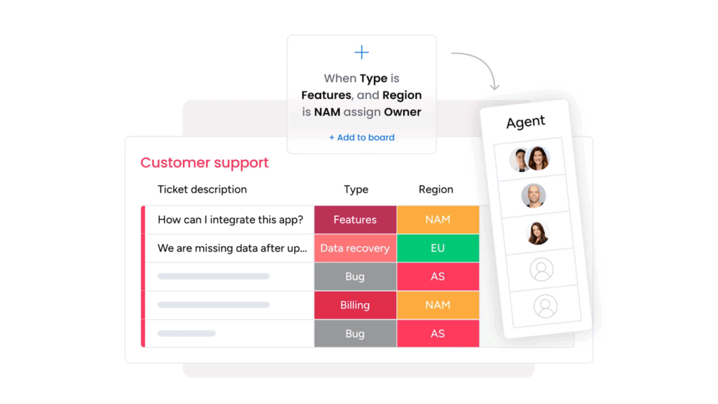 - 跨部門溝通零斷層:別再讓 HR、財務、IT、招募各自為政了!有了 monday service,所有和人員相關的團隊都能同步進度,不再資訊不對稱。系統還會自動追蹤、回覆訊息,大幅縮短溝通時間,讓大家把心力放在創造更好的員工體驗上,而不是被 email 或訊息往返拖住。