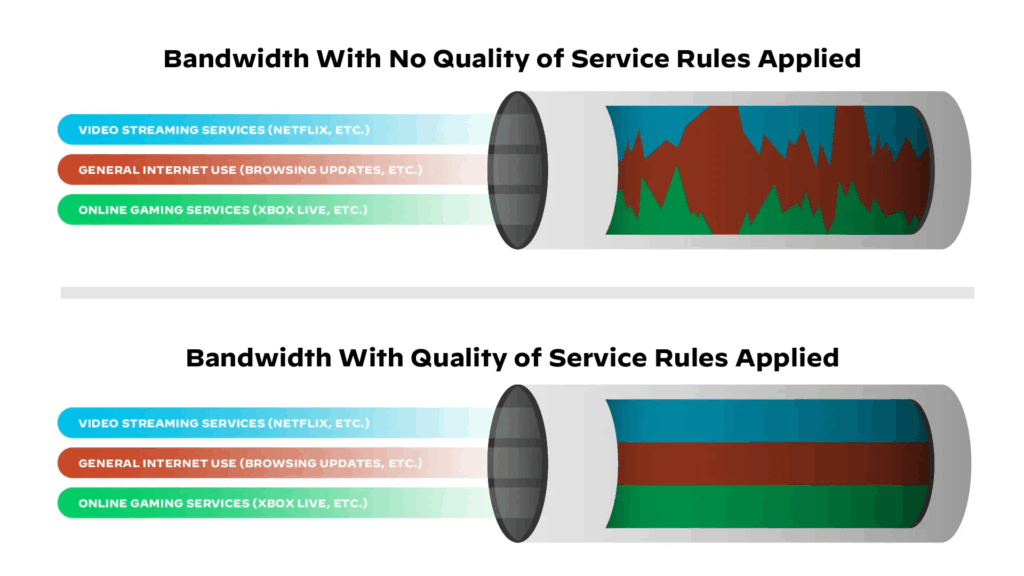 在背後,網路服務商和服務團隊會透過控制網路流量,確保應用程式能拿到足夠的頻寬,讓它們流暢運行。這套方法就叫 QoS(Quality of Service,服務品質)。