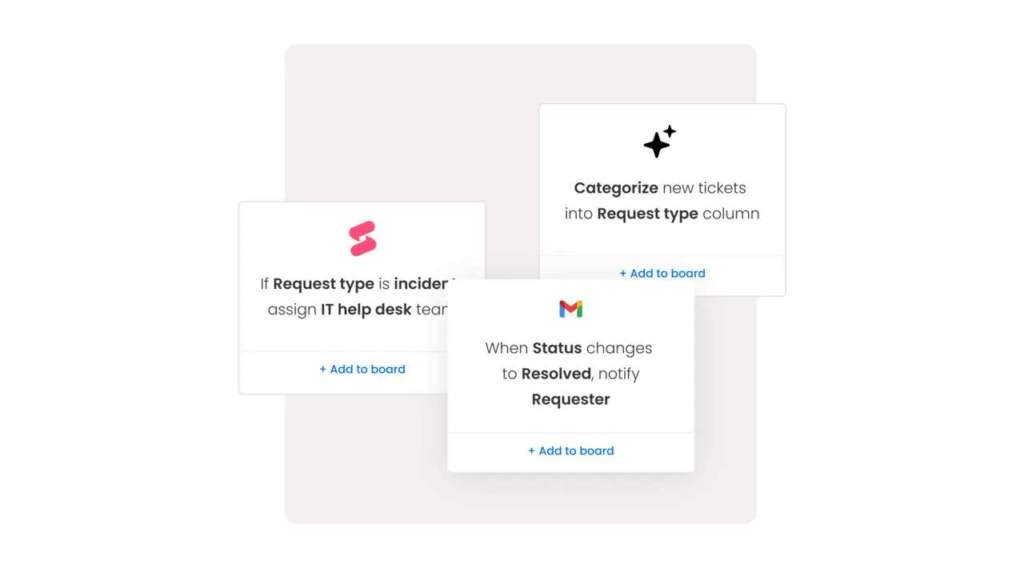 這時候,monday service 就派上用場了。這是一個操作直覺的平台,還結合 AI 的力量,能幫助團隊在規模化服務中依然保持高效率。以下是幾個能幫你把 QoS 真正落實到組織裡的關鍵功能: