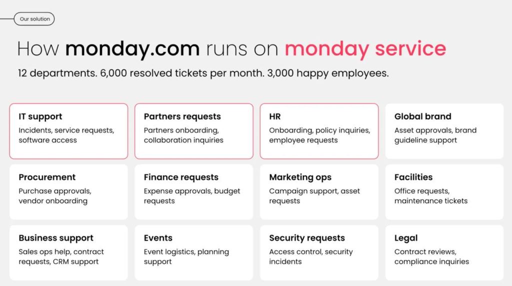 monday service 是一個全方位的服務管理平台,把團隊需要的工具通通整合在一起,幫助你提供更好的服務。它的設計重點,就是優化服務流程、讓報告透明化,還能讓溝通更順暢。