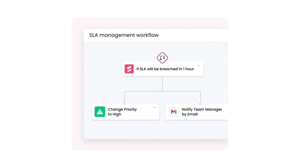 用拖拉的方式就能輕鬆打造一套完全符合需求的 SLA 管理流程。你可以把回覆、通知、追蹤、動作甚至審批都加進來。最棒的是,這套流程非常有彈性,可以隨著 SLA 要求的變化,隨時更新調整。