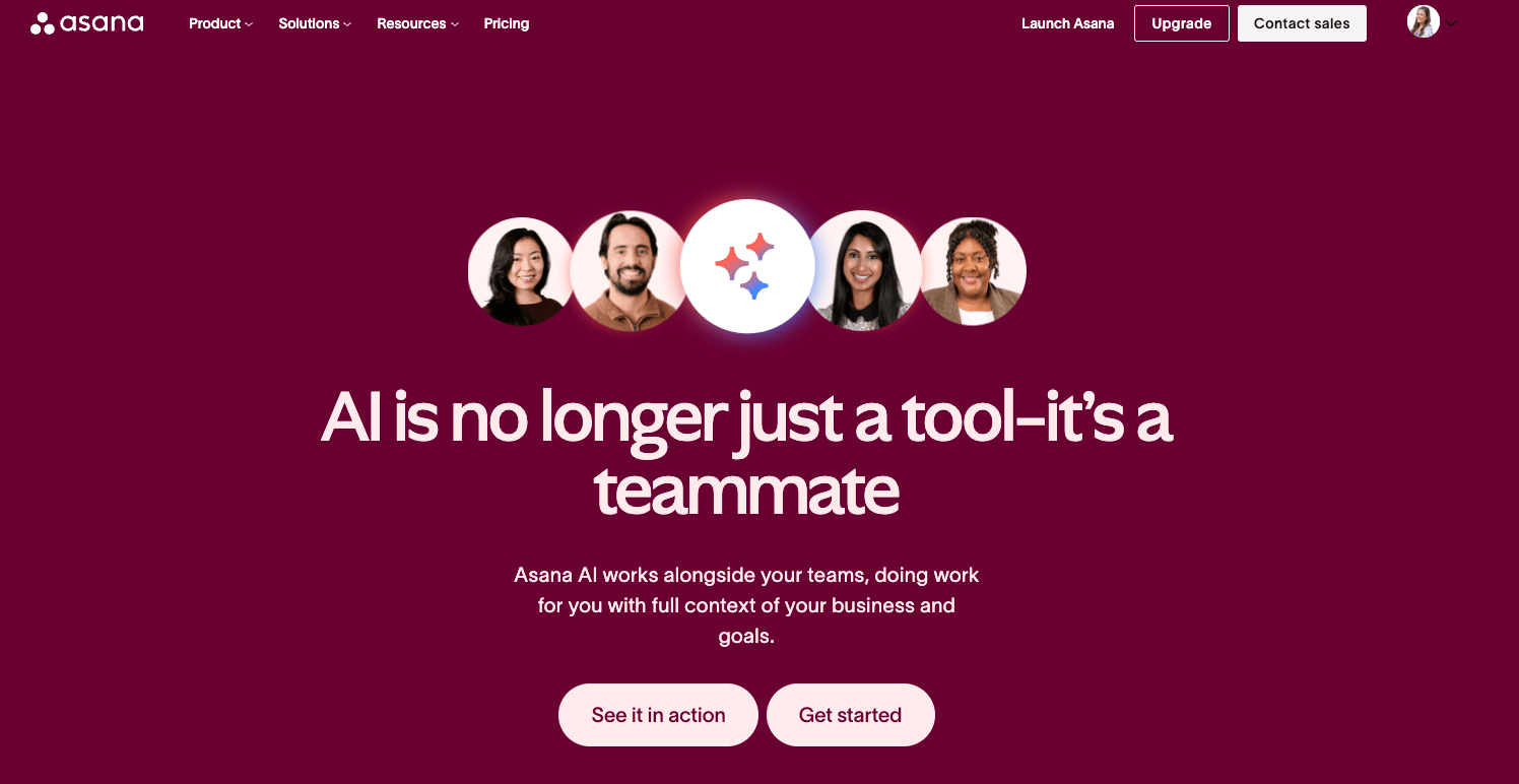 Asana homepage for AI features