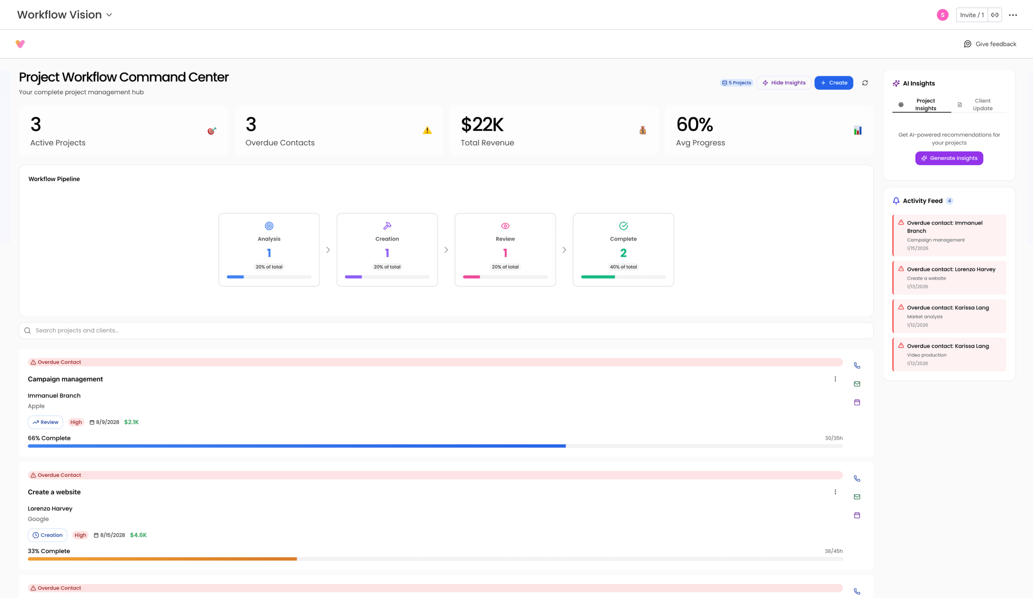 Build custom high-level overviews with everything team members need to know about ongoing projects to hit deadlines and exceed customer expectations.
