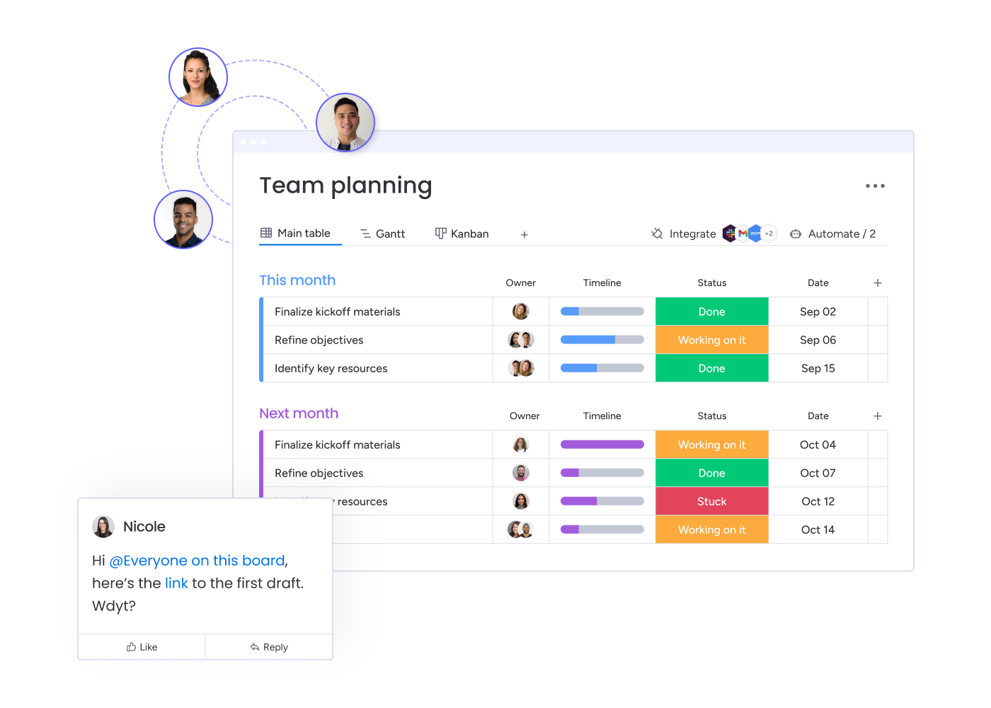 Collaborate seamlessly across teams and departments to gain visibility into the progress of your work. Align everyone with a platform they enjoy using for smooth execution.