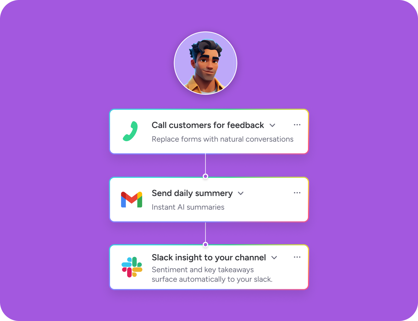 It’s an AI agent that reaches out to anyone you want to collect feedback from. It can send emails at scale, make outreach calls, schedule meetings when needed, update your data in real time, and even summarize everything so you get the real insights effortlessly.