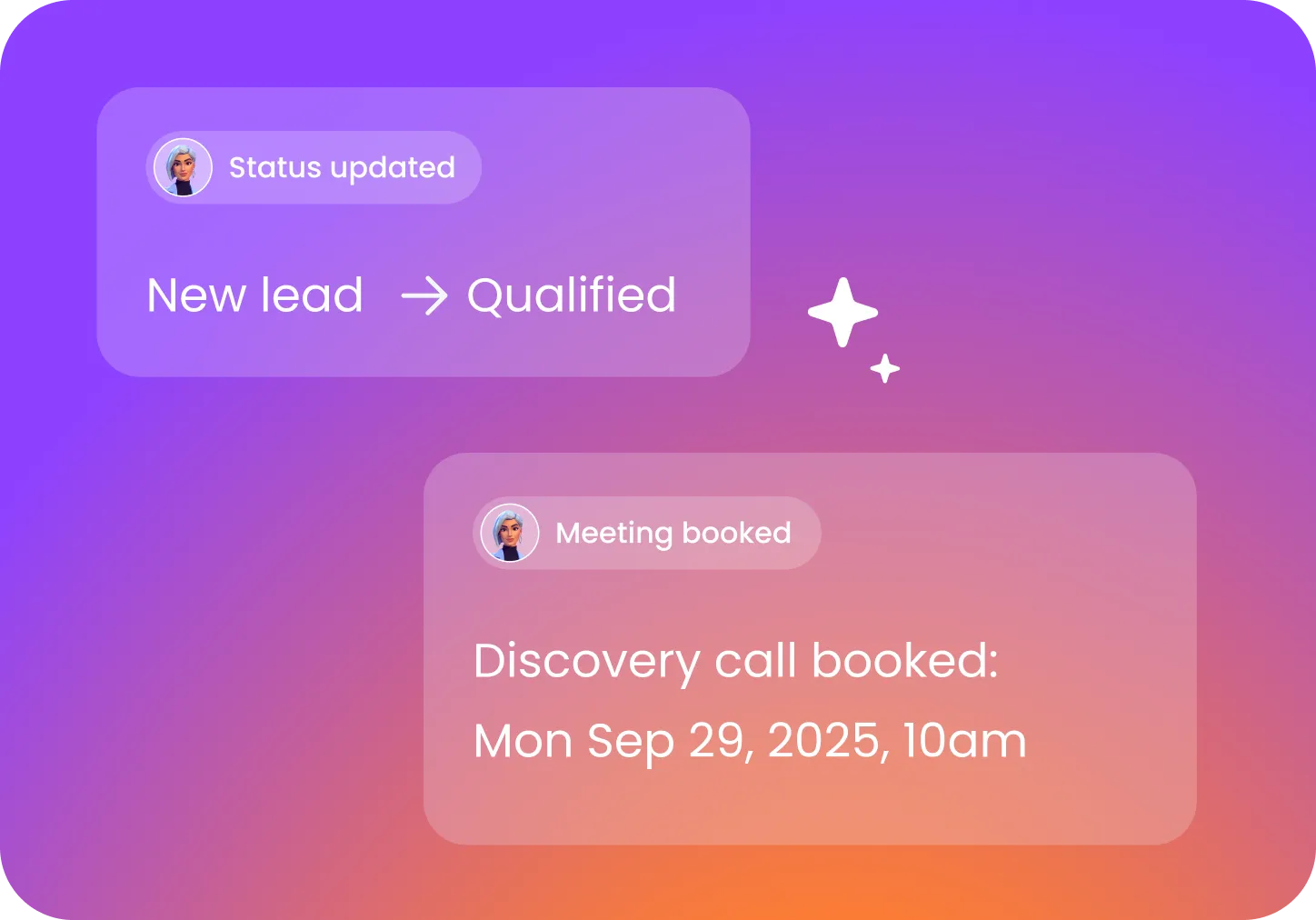 Books meetings, sends reminders, and keeps conversations moving without you lifting a finger.