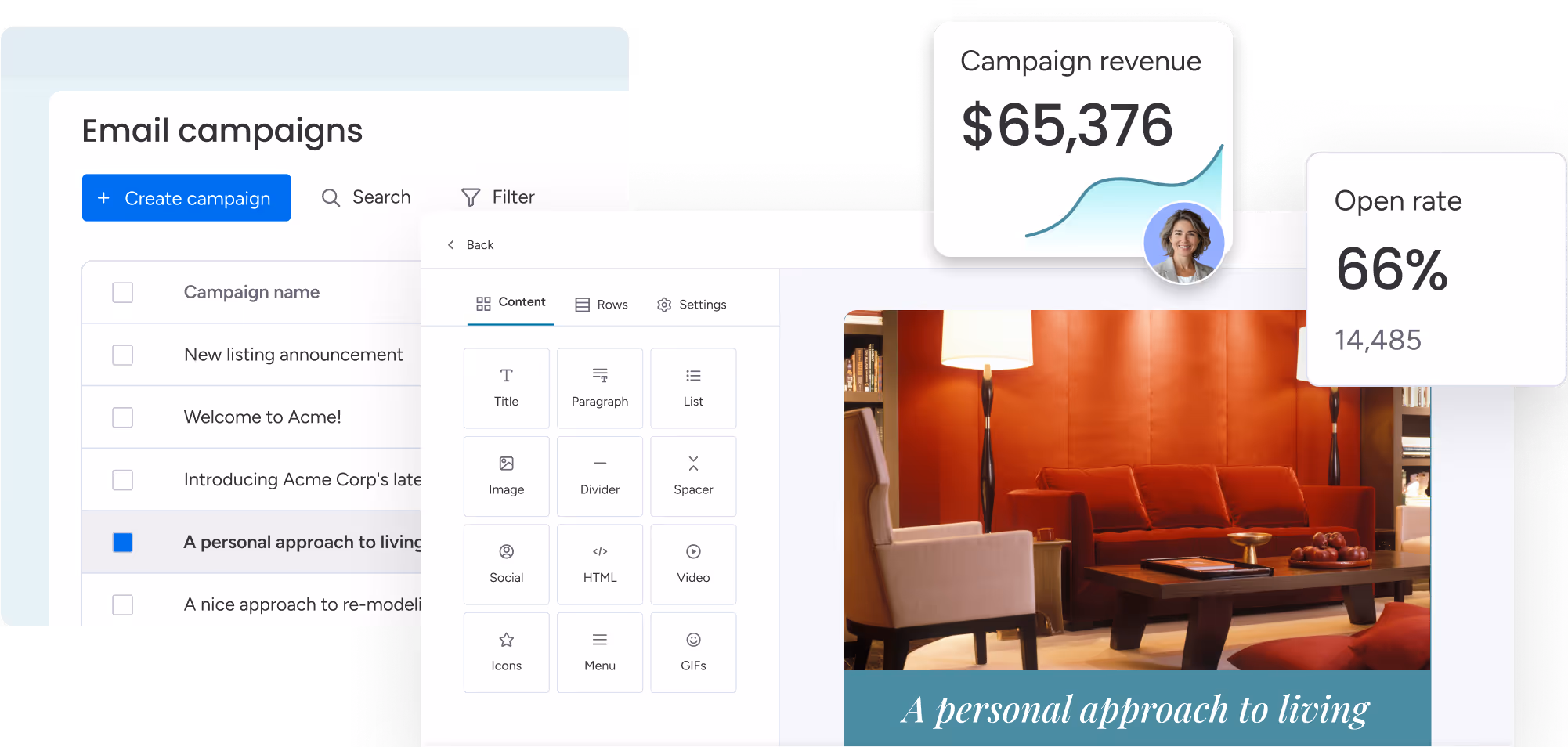 Build, launch, and optimize on-brand email campaigns, straight from your CRM.