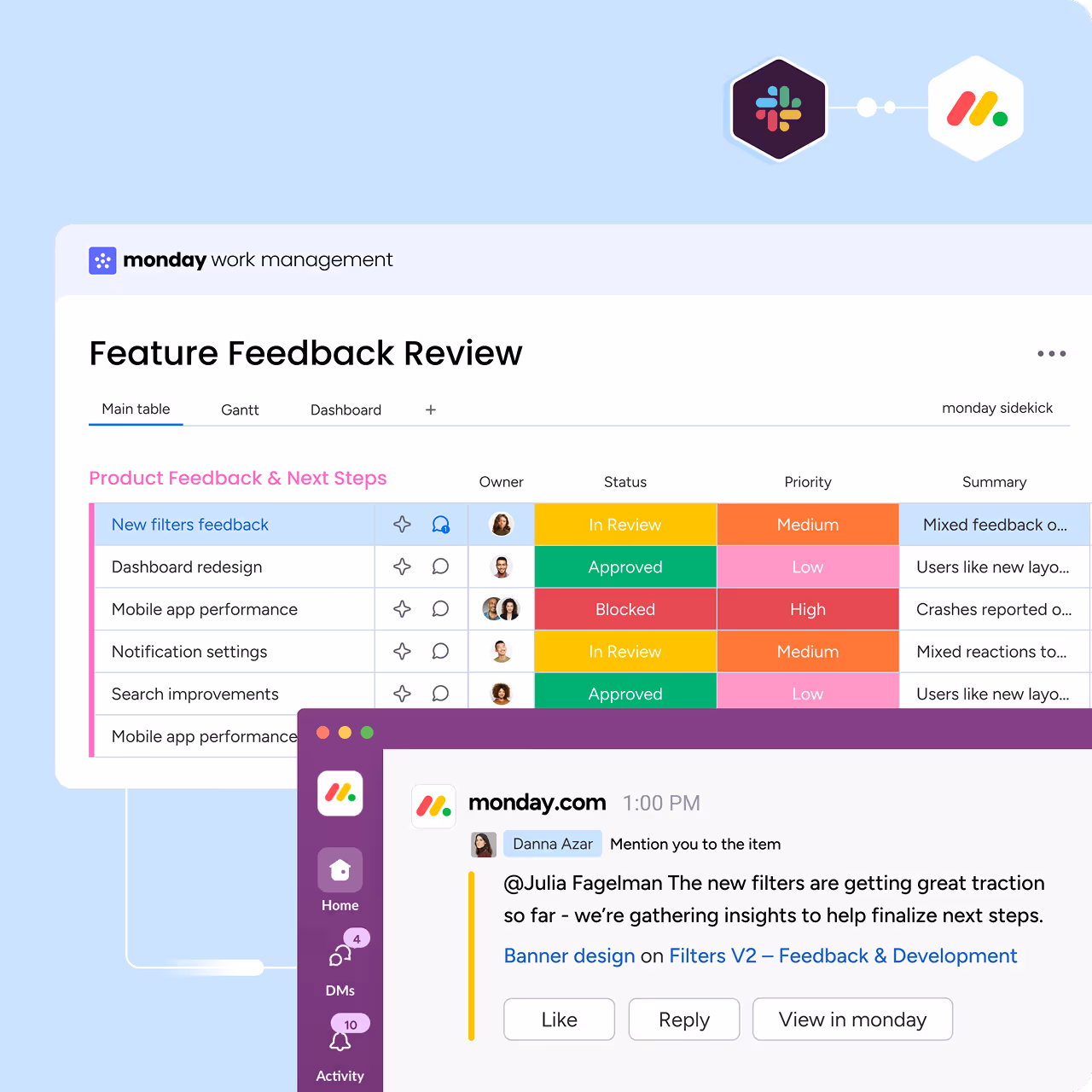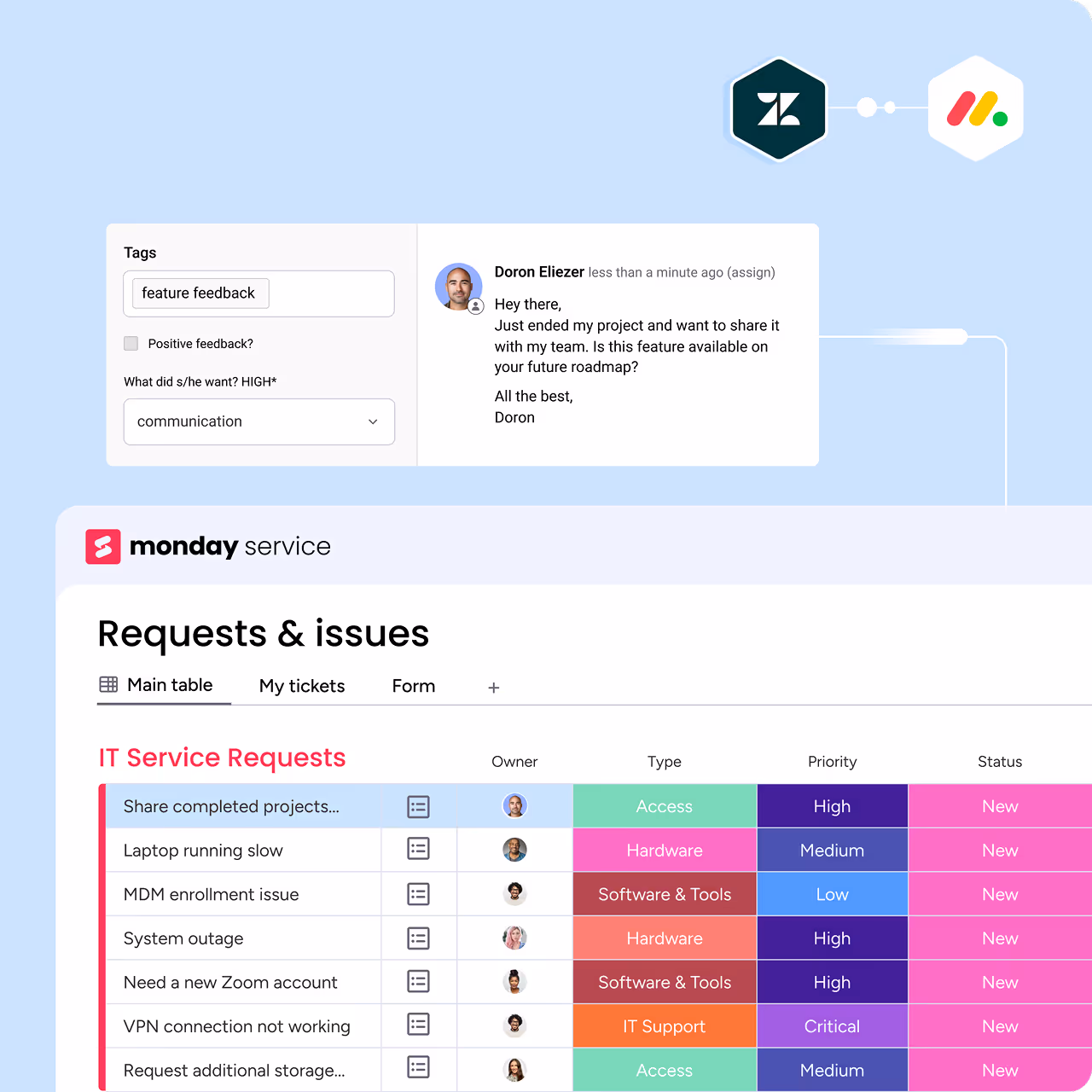 Enable 2-way sync between monday products and any platform you work with to trigger automations, eliminate manual work, and keep your business in motion.