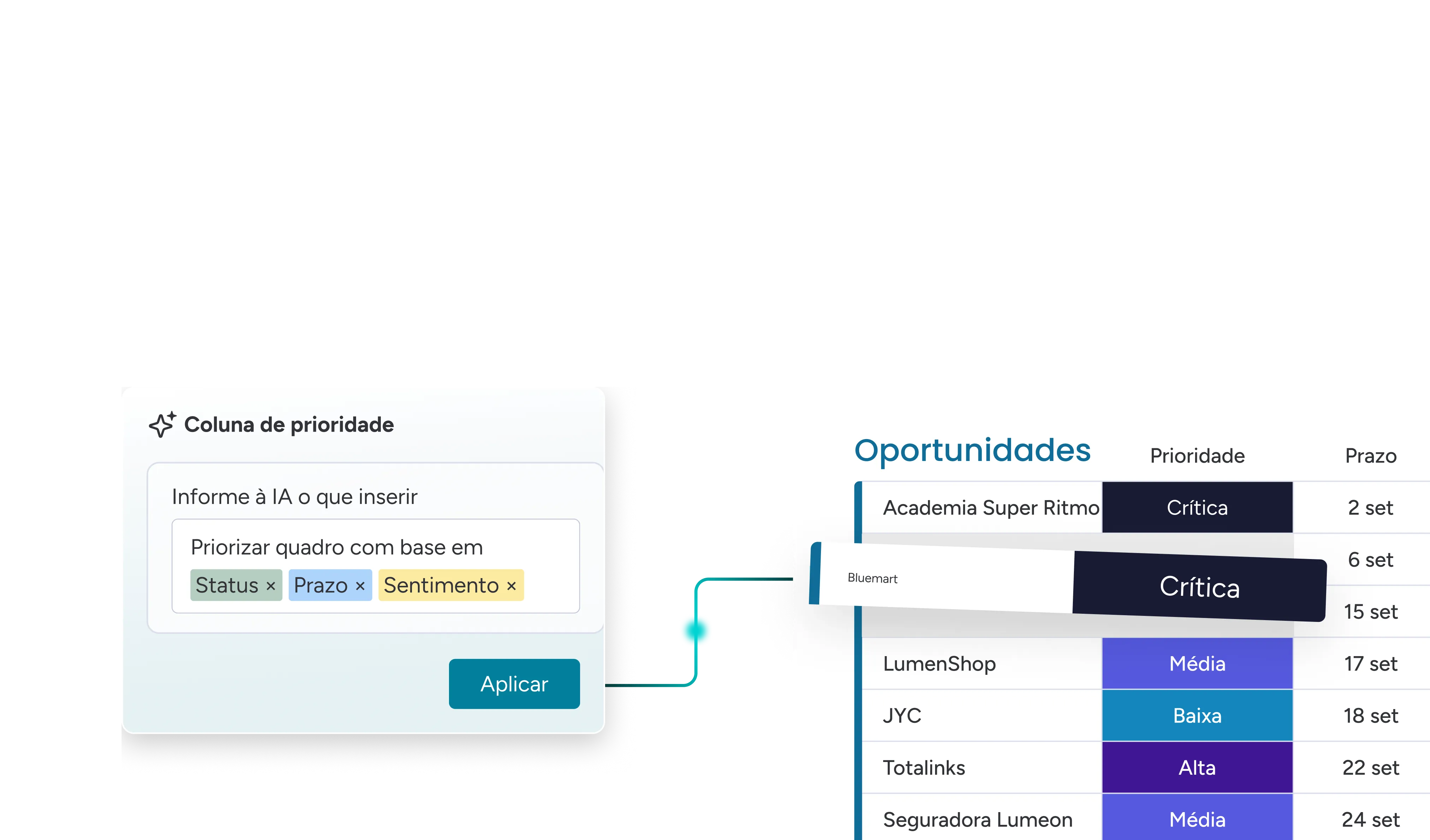 Você pode começar facilmente adicionando uma nova coluna ao seu quadro ou por meio da Central de automações. Para um guia mais detalhado, confira nosso artigo da base de conhecimento.